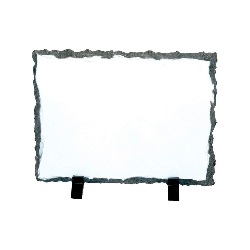 Ideal for cherished images of every kind including full color photos, awards, and other valuable keepsakes. Made from natural sedimentary stone, each photo slate comes complete with sublimation-coated surface, stylish, black plastic stands, and fitted box.