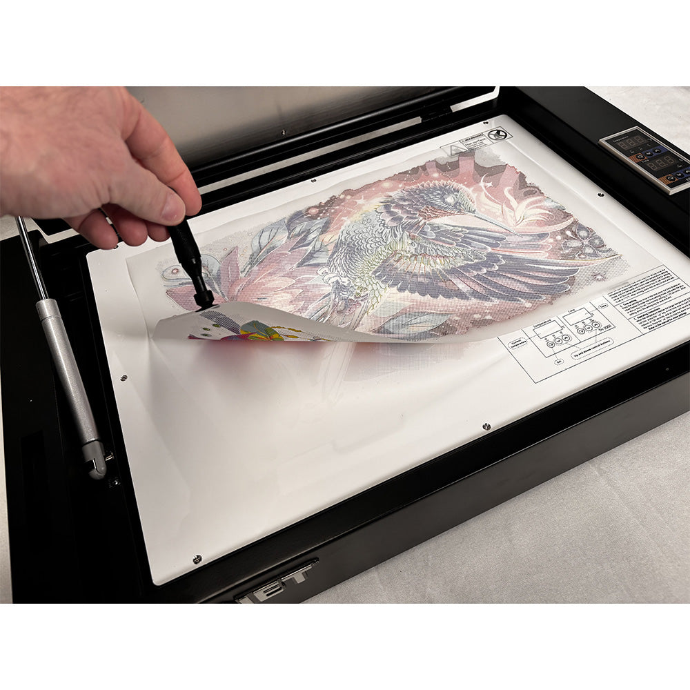 Dit is het nieuwe generatie warmtestation, ontworpen als inline-aanvulling op elke DTF-printopstelling. Het biedt instelbare temperatuur- en tijdsregeling.